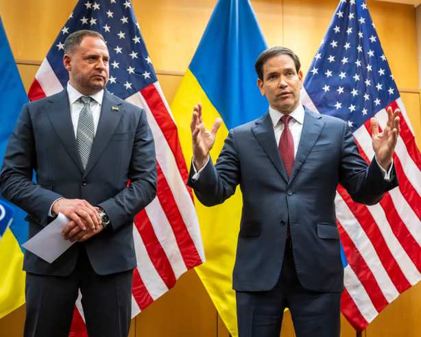 Ukraine’s Andriy Yermak and US secretary of state Marco Rubio after discussions in Geneva on a US proposed peace plan. Photograph: Martial Trezzini/AP